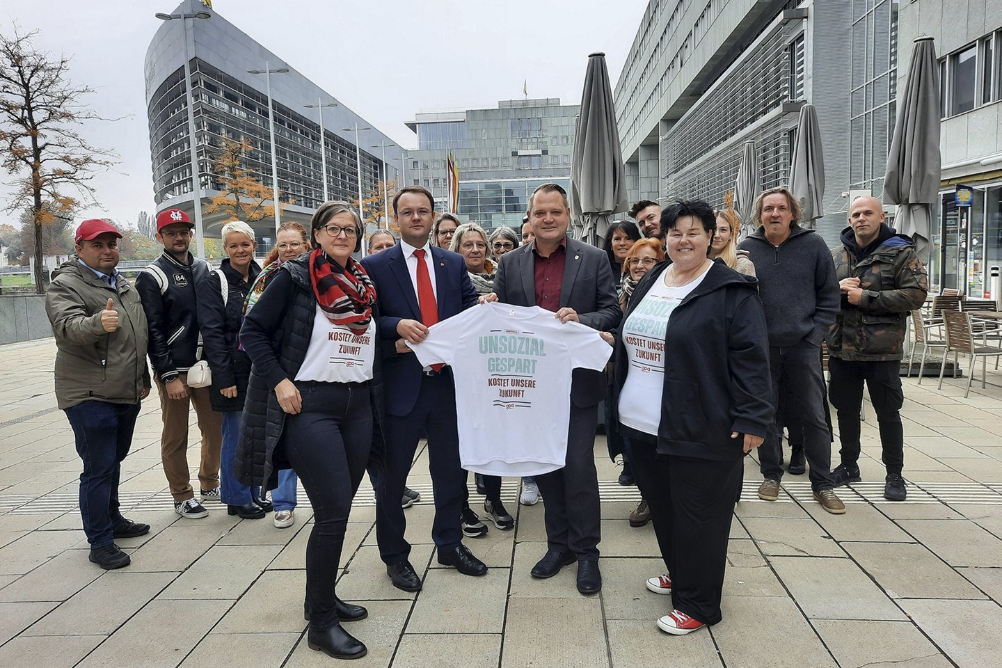 Vor kurzem beklatscht – heute nix mehr Wert? Protestaktion der Betriebsrät:innen der Sozialwirtschaft Niederösterreich im Landtag