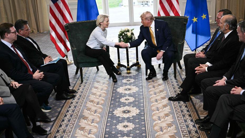 Unter dem Druck angedrohter Strafzölle vereinbarte EU-Kommissionspräsidentin Ursula von der Leyen Ende Juli 2025 mit US-Präsident Donald Trump ein Handelsabkommen. Statt europäische Arbeitsplätze zu schützen, droht der Deal Investitionen abzuziehen und Standards zu senken – auch US-Arbeitnehmer:innen gehen leer aus.
